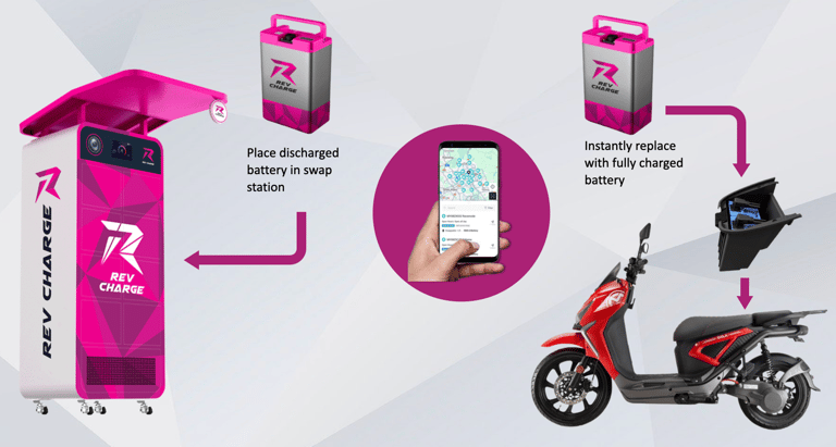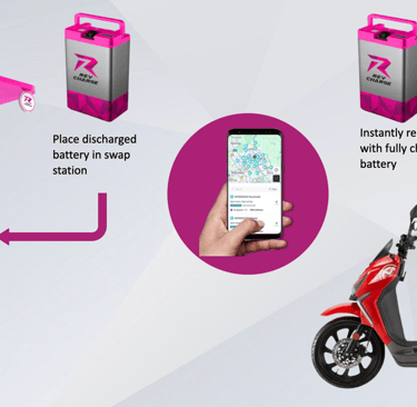 Battery swapping allows quick replacement of depleted batteries with fully charged ones for uninterrupted rides.